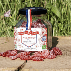 Chacune de nos recettes de bonbons contient 15% de notre bon Miel de Nectars bio du Lot-et-Garonne. Nous nous sommes inspirés des fruits, des desserts et de ce que l’on fait de mieux pour vous offrir une recettes de bonbons gourmands, parfumés au coquelicot et avec un vrai bon goût de miel.