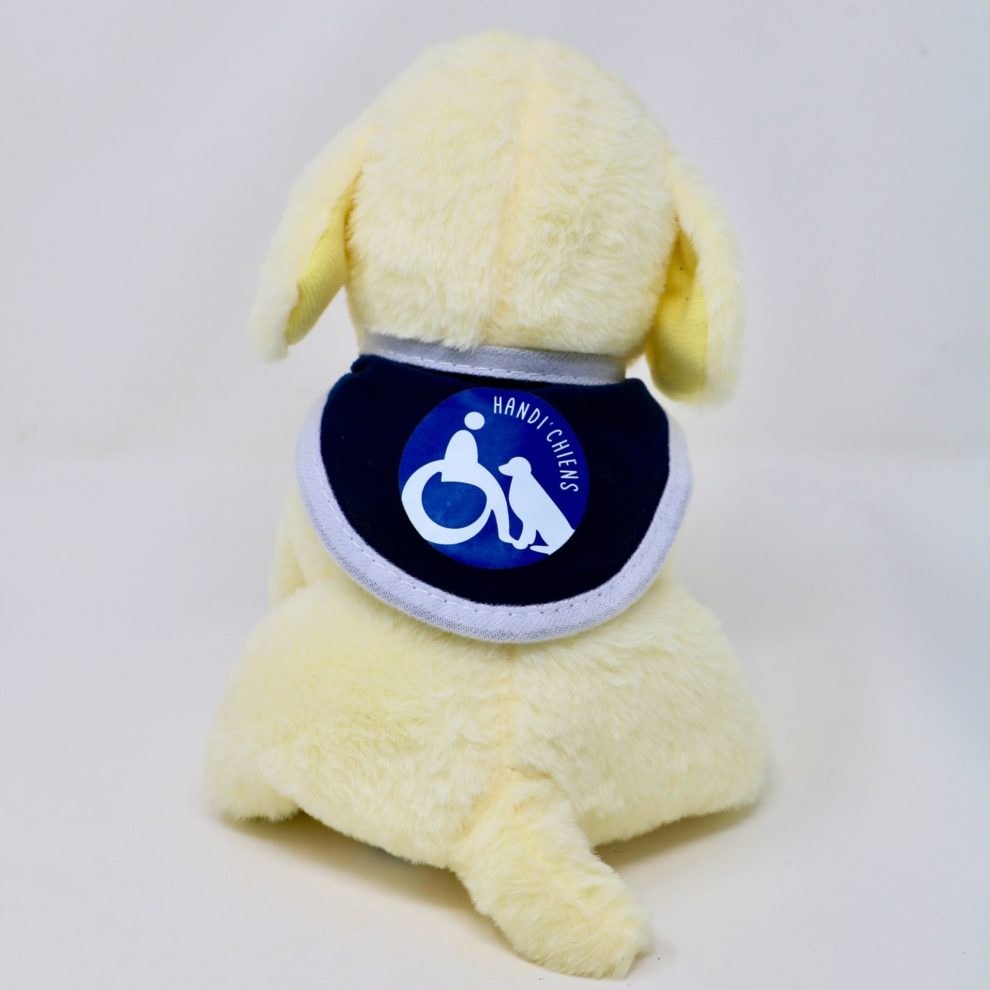 Adoptez la peluche HANDI’CHIENS : toute la douceur et la tendresse de nos chiens d’assistance dans un compagnon à câliner ! Plus qu’une simple peluche, c’est un symbole de solidarité : chaque achat contribue à la formation de super-héros à quatre pattes qui changeront la vie de personnes qui en ont vraiment besoin. Offrez(-vous) un cadeau plein de sens !