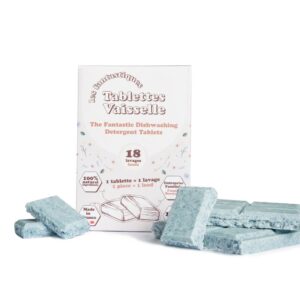 Nos tablettes pour lave-vaisselle sont des alliées sans plastique et ultra-pratiques. Il vous suffit de glisser une seule tablette directement dans le compartiment dédié de votre lave-vaisselle.